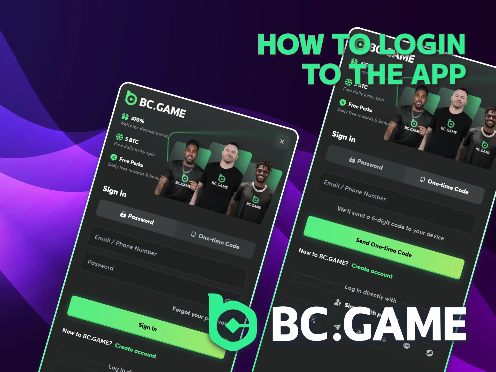 After creating your account, you can sign in anytime through the BC Game app. We support standard login by email or phone number, as well as quick access via one-time code (OTP) or social accounts. Login Steps: